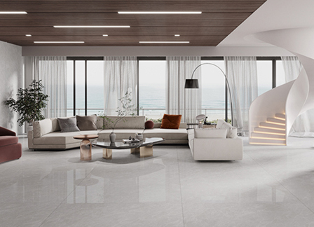 大理石瓷磚以輕松的灰為主色調,結合膚感、止滑、珠光、精雕、柔光、易潔耐磨等產(chǎn)品工藝,締造光感舒適、觸感細潤的簡(jiǎn)約時(shí)尚空間,讓人在繁忙的生活中擁有靜逸與安閑。